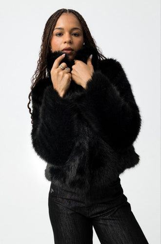 Veste courte Tiffosi femme – Fausse fourrure noir chic | 3e Acte
