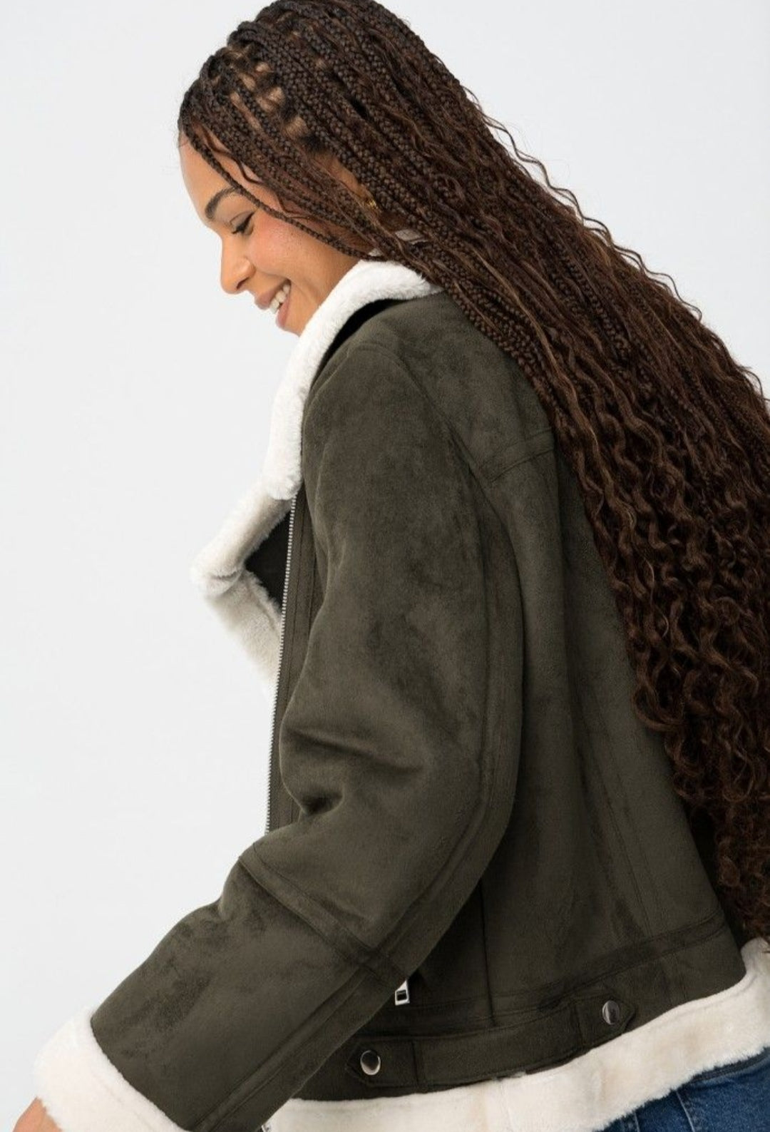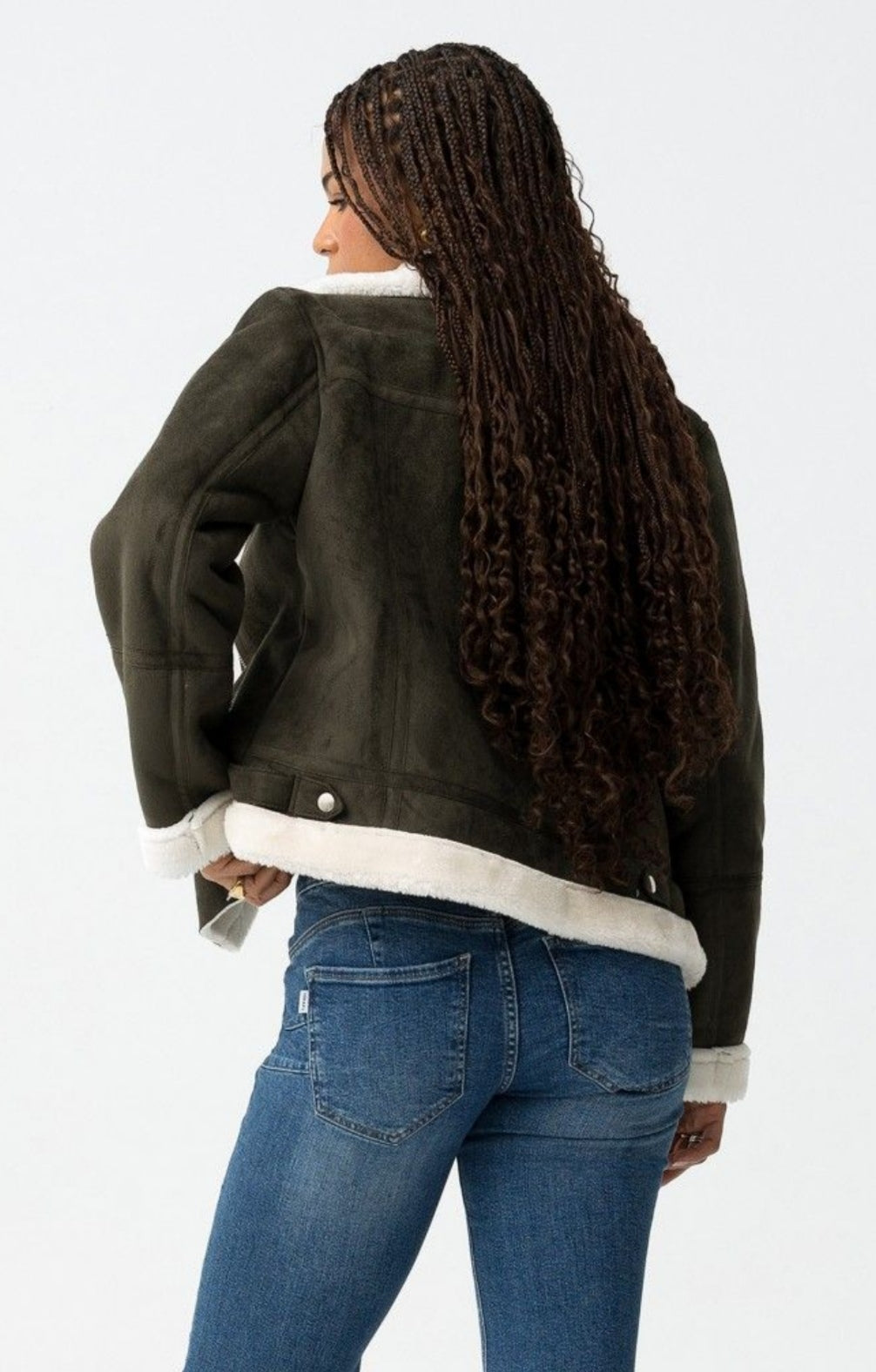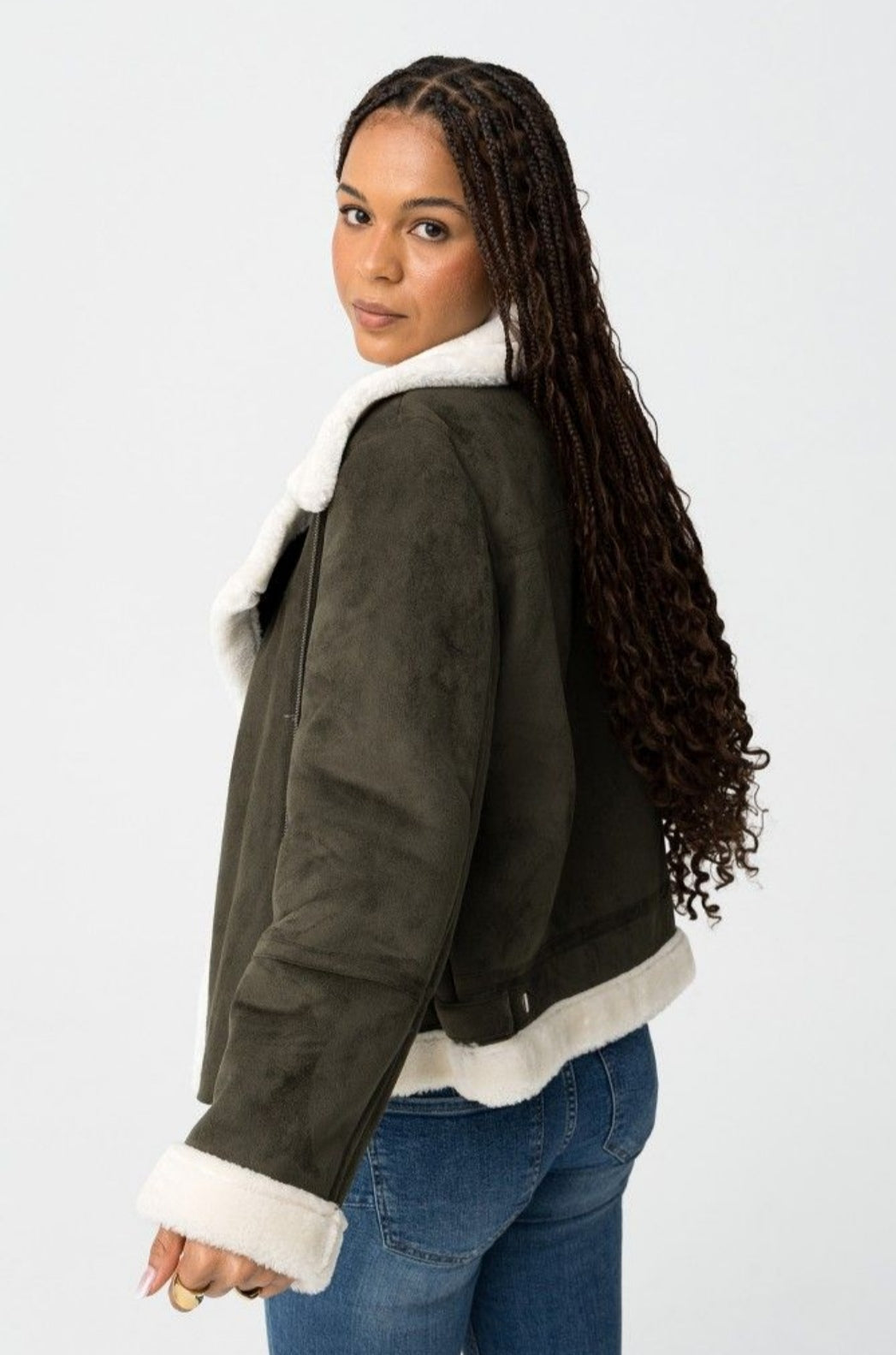 La veste Tiffosi en suédine kaki dark avec doublure effet shearling est l’alliée parfaite des journées fraîches où le style ne prend pas de pause.